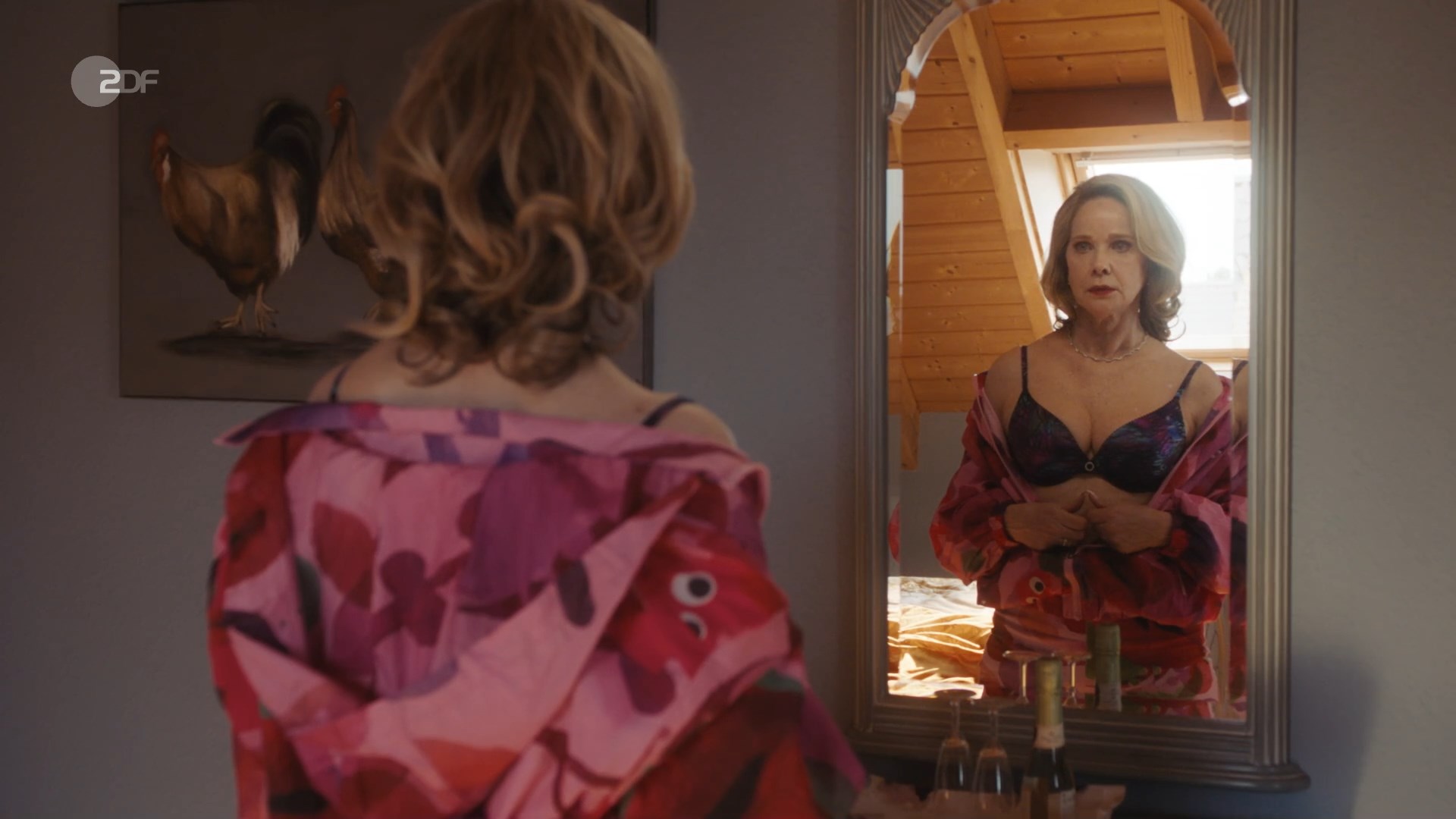 Ann-Kathrin Kramer is very sexy in the movie “Mona & Marie 2 - Ein etwas anderer Geburtstag” which was released in 2023. She demonstrates us a good cleavage, and her breasts in a bra in this clip.