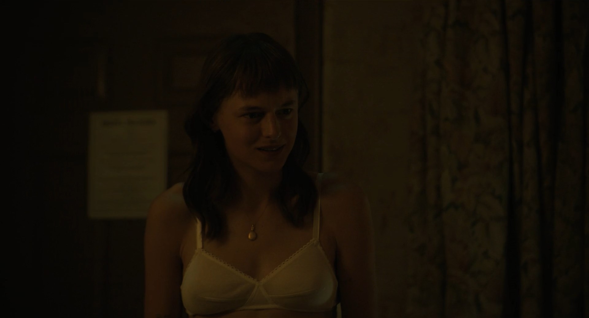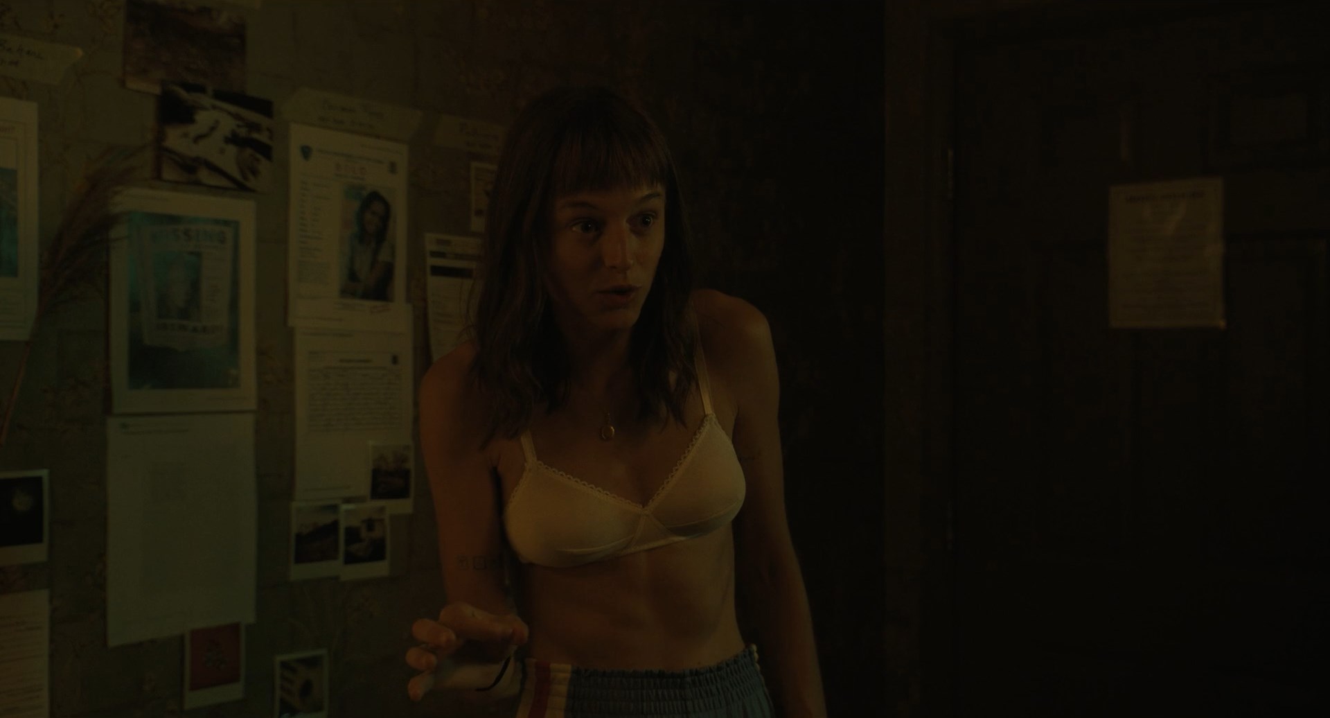 Emma Corrin is naked in the show “A Murder at the End of the World” season 1 episodes 5-6 which were released in 2023. She flashes nude tits and butt in this clip. We can also observe erotic moments where the actress is in lingerie.