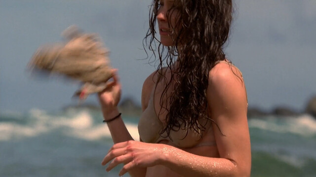 Evangeline Lilly is sexy in the show “Lost” seasons 1-6 which were released in 2004-2010. She is showing us a good cleavage, and her seductive body in a bikini here.