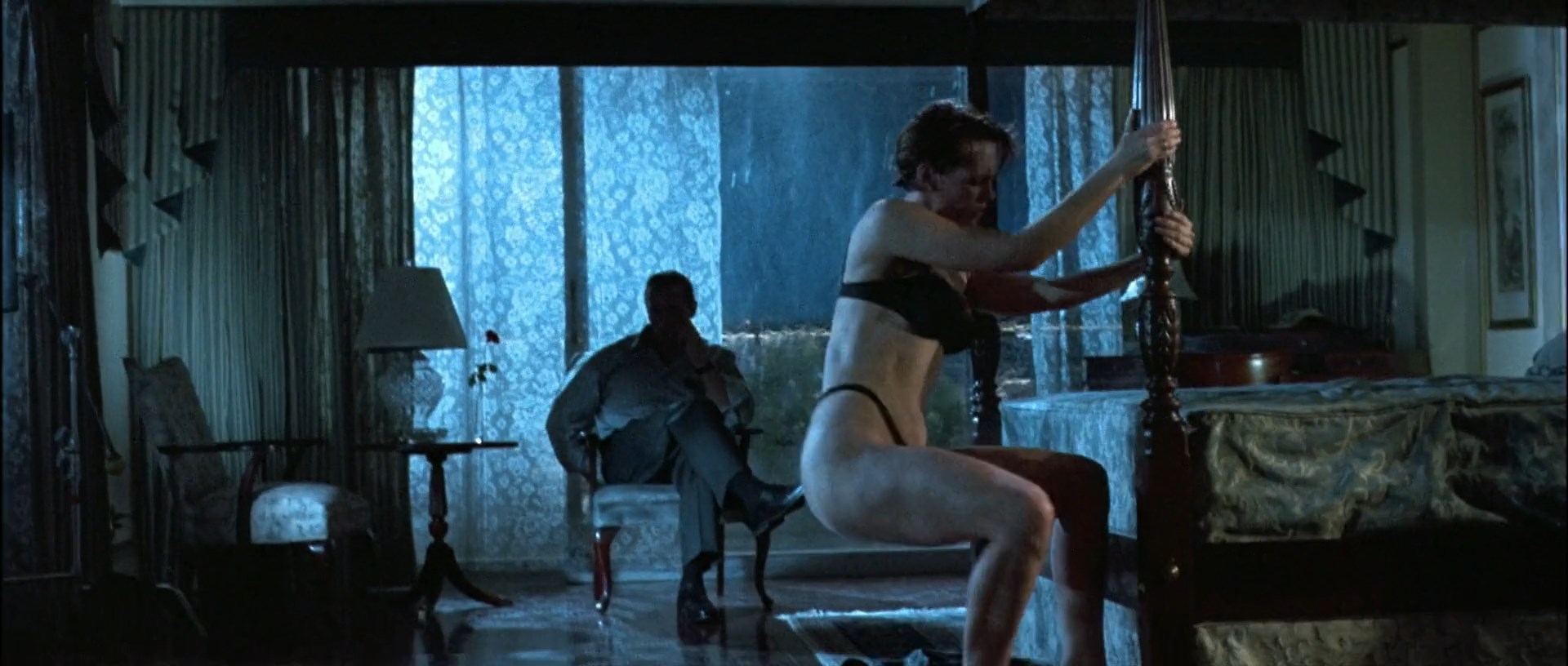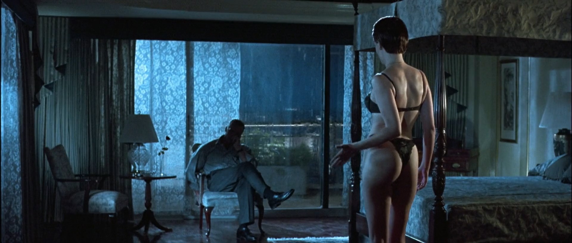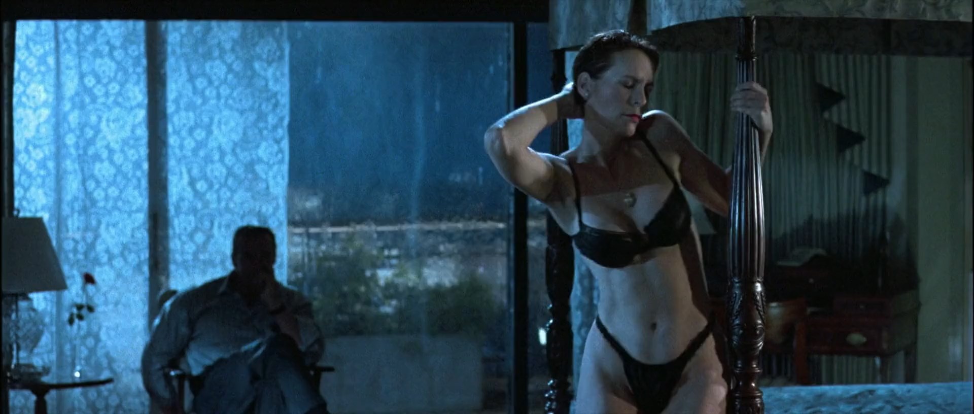 Jamie Lee Curtis and Tia Carrere have sexy scenes in the movie “True Lies” which was released in 1994. Jamie shows her seductive body in lingerie.