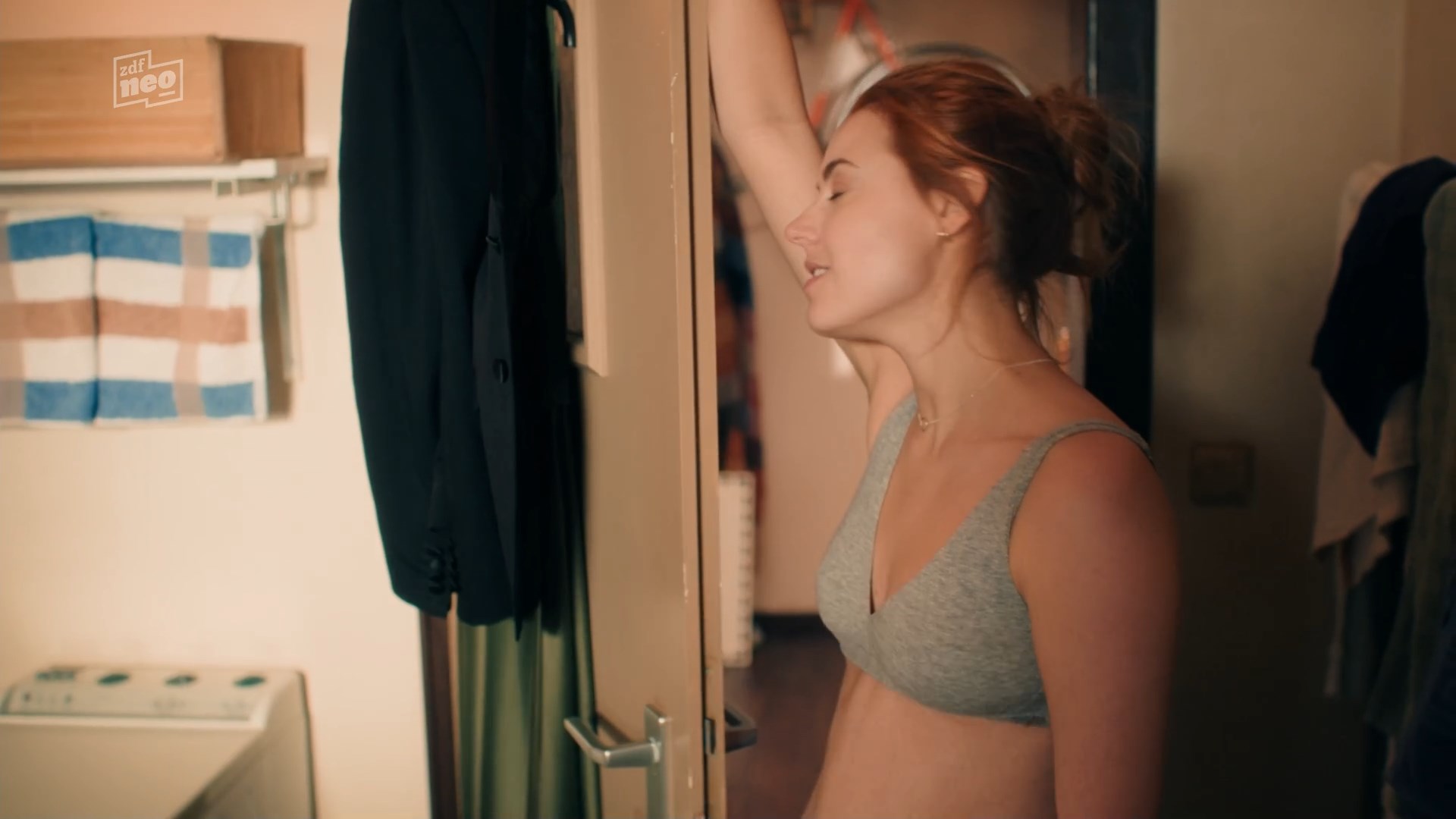 Meriel Hinsching has sexy scenes in the show “Ich dich auch!” season 3 episode 1 which was released in 2024. She shows the body in underwear in this video.