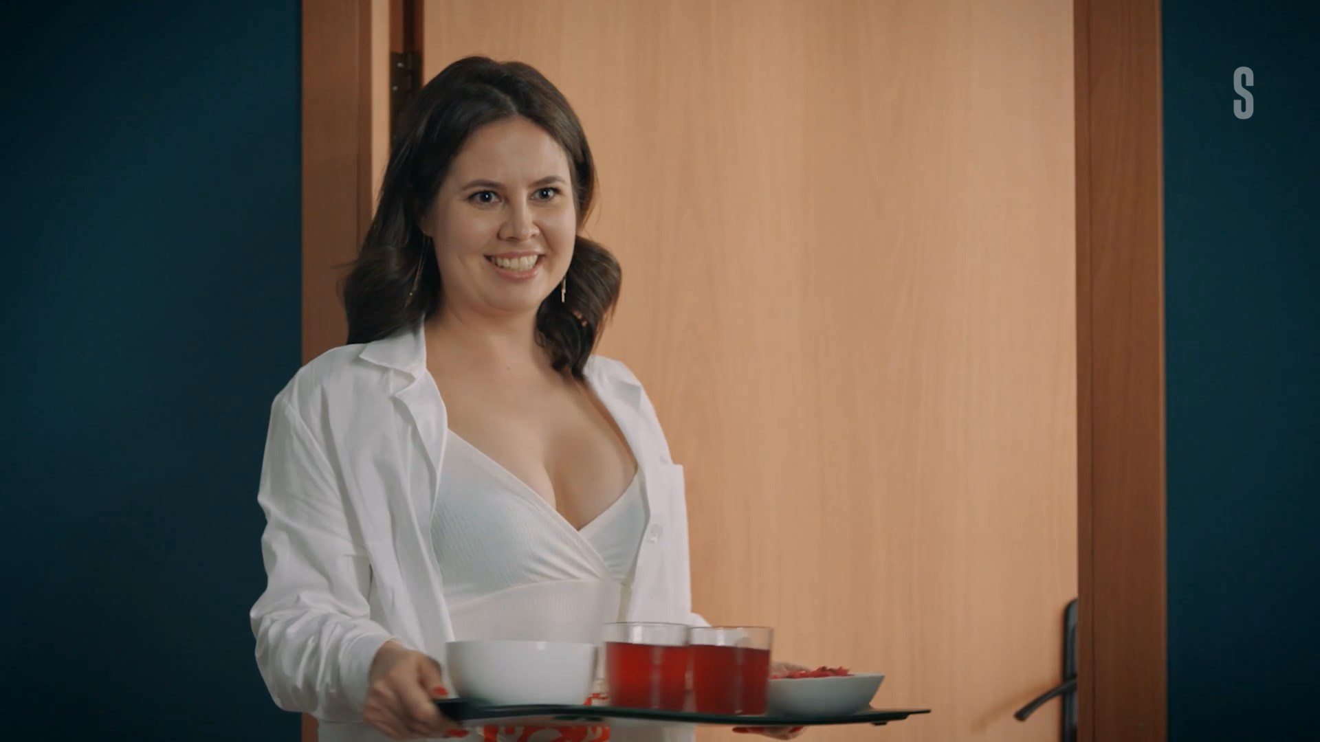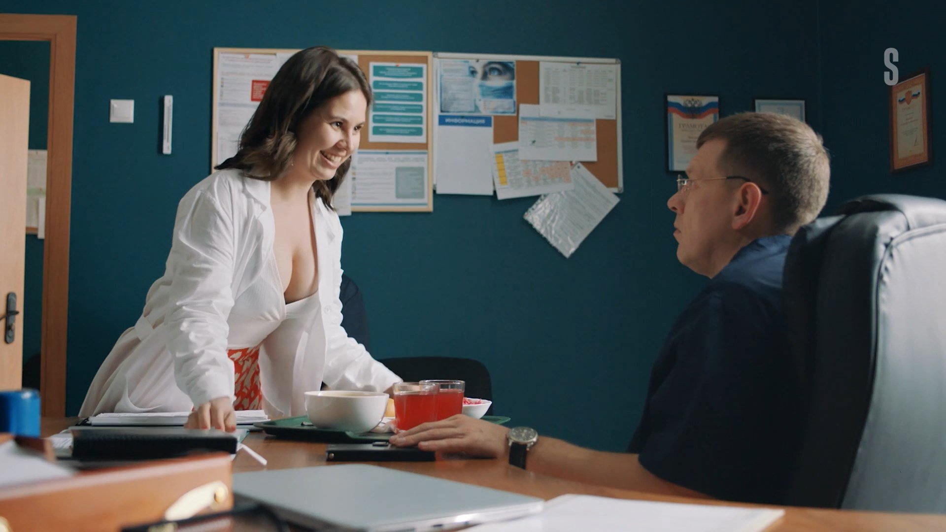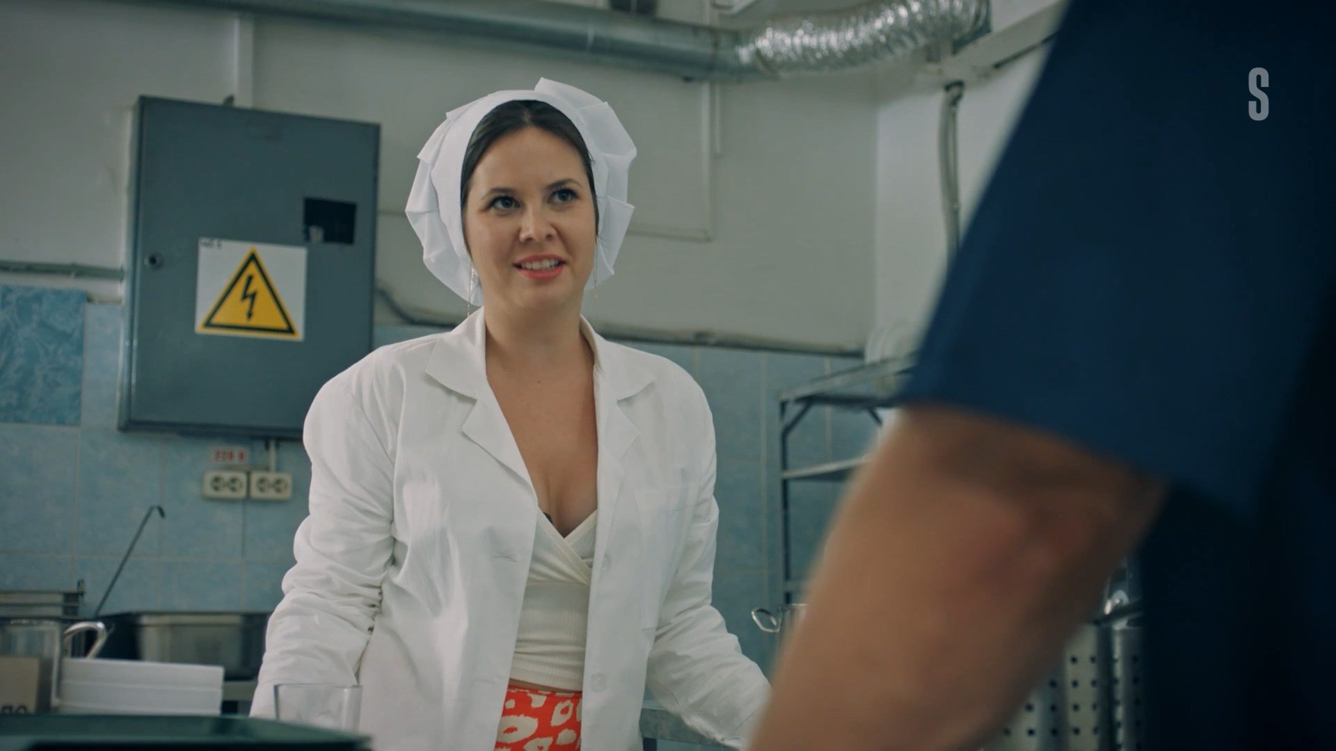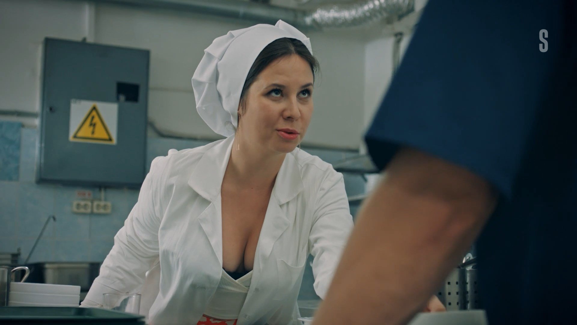 An unknown actress has sexy scenes in the show “Protiv vsekh” season 3 episode 14 which was released in 2024. She demonstrates us a good cleavage in this video.