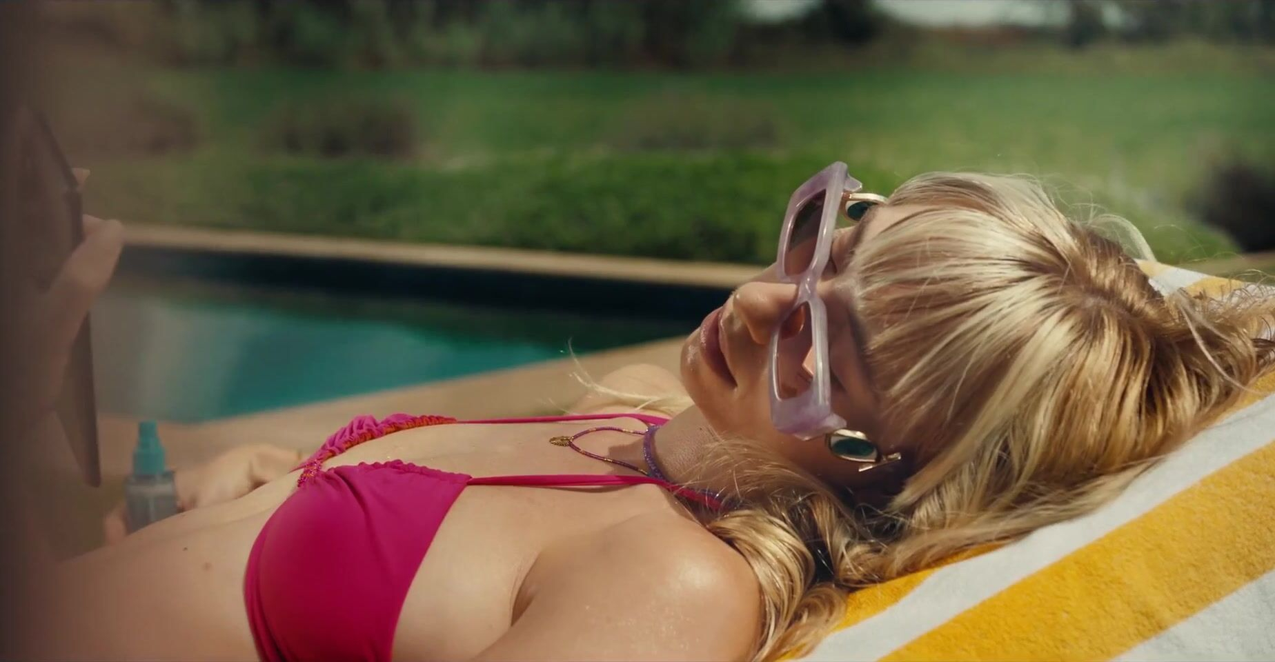 Spanish actress Violeta Rodríguez has sexy and nude scenes from 'Calladita' witch was released in 2023. Violeta demonstrates her body in a bikini and shows her boobs.